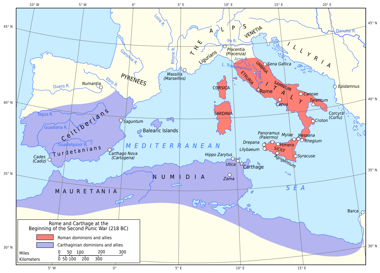In fact, Rome and Carthage were not nation-states but city-states. At this point in history, the only Roman citizens were the people who lived in Rome.4 Other people in Rome’s sphere of influence were citizens of their individual cities, which were in turn allied with Rome. Allied cities maintained their own militaries that would, ideally, resist the Carthaginians.